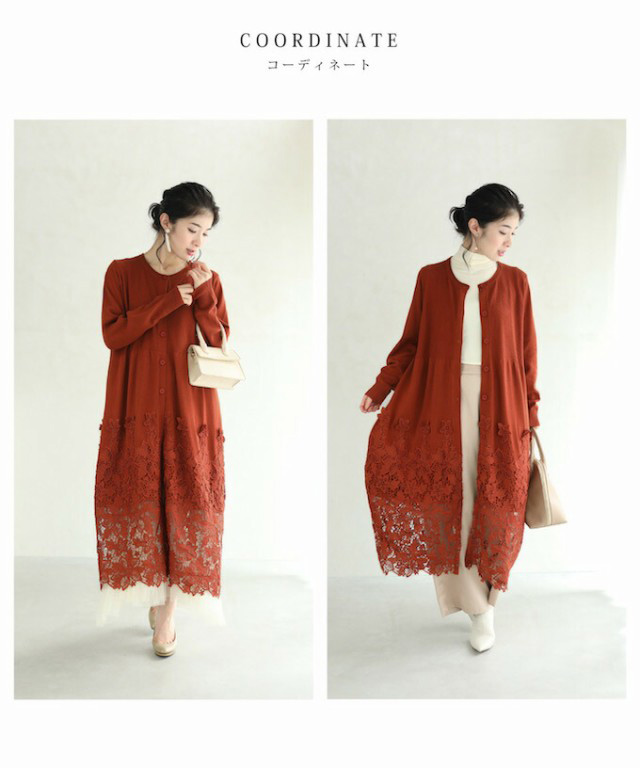 新作 新着 再入荷 CAWAII FRENCHPAVE フレンチパヴェ エレガント ベーシック カジュアル 可愛い かわいい カワイイ おしゃれ オシャレ お洒落 個性 個性的 定番 ベーシック 大人かわいい 大人可愛い 上品 女性らしい デザイン スタンダード ナチュラル きれいめ キレイめ シンプル フェミニン 花 レース ニット ロングカーディガン ニットカーディガン 羽織り カーディガン 前開き ボタン 長袖 長そで ロング袖 クルーネック 丸首 M L フリーサイズ フリー 低身長 高身長 小柄 大柄 細身 標準サイズ 大きめシルエット 大きい 大きめ ビッグシルエット ぽっちゃり F サイズ自由 2L LL XL 3L LLL XXL 大きめサイズ 大きめ 大柄 大きい ビッグシルエット オーバーサイズ ゆったり F フリーサイズ ゆったりサイズ 春 秋 春服 春物 秋服 秋物 着回し 重ね着 体型カバー 体型隠し 体型隠れる お尻隠し 太もも隠し お腹隠し 隠れる 着痩せ 細見え ワンカラー ワントーン 日常着 普段着 日常使い ヘビロテ 毎日着れる おでかけ 休日 オレンジ 花 フラワー
