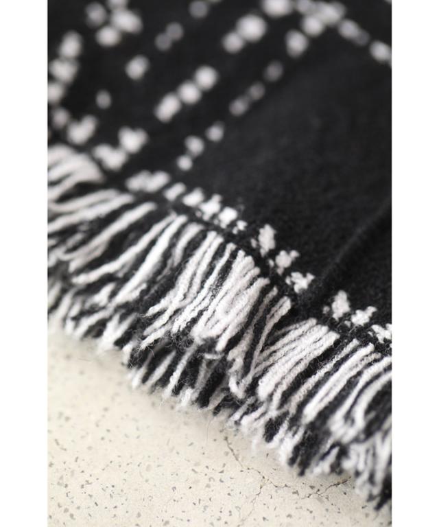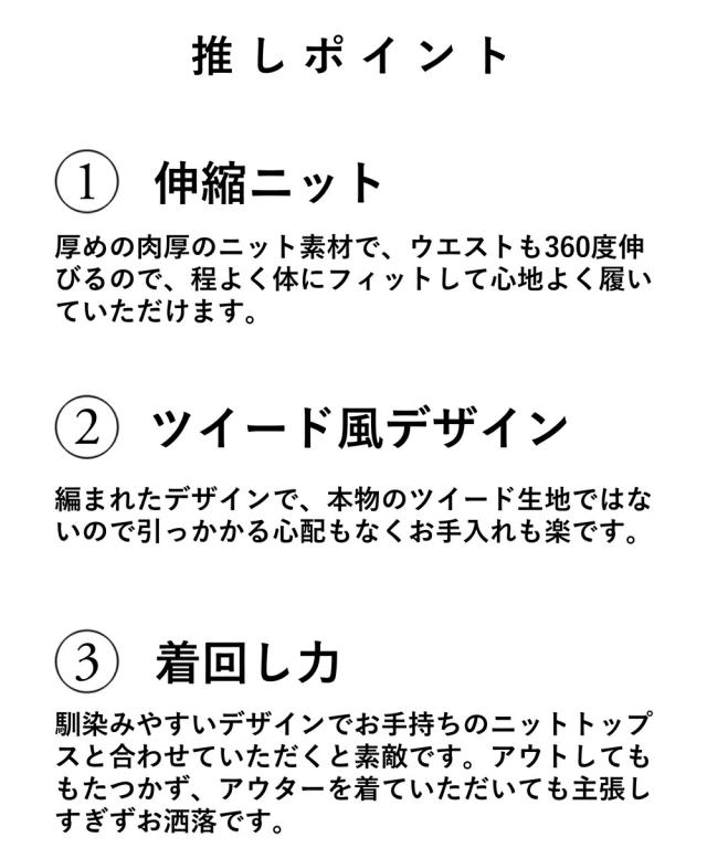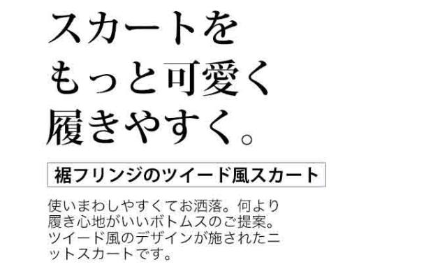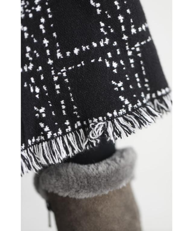 「(黒)裾フリンジが可愛いツイード風ニットミディアムスカート」