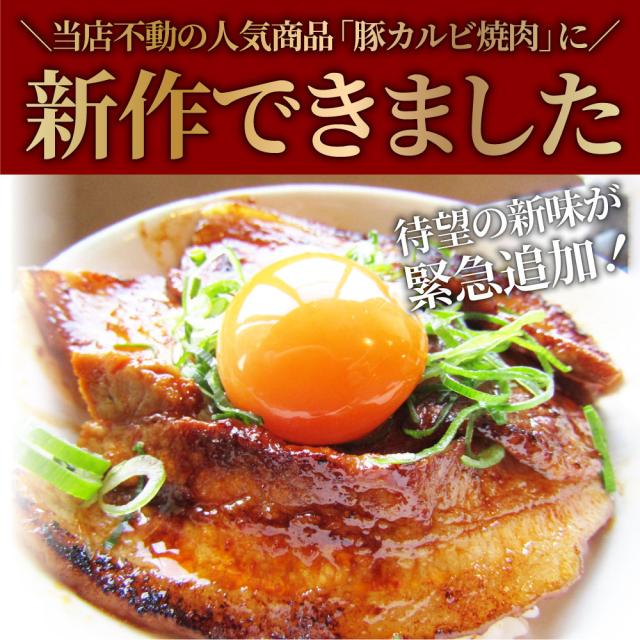 【原材料名】豚カルビ、しょうゆ(国内製造)、糖類発酵調味料、醸造酢、みそ、砂糖、ごま、にんにく、ピーナッツバター、しょうが/アルコール、調味料(アミノ酸等)、(一部に小麦・落花生・ごま・大豆を含む)