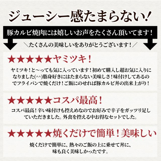 - 何度注文させてもらってます。毎回、早く発送をしてくれるのですご有り難いです。本日届いた、みそ豚カルビは、明日の晩御飯に丼ぶりにして食べようと思います。丁寧な対応、迅速な発送ありがとうございます。