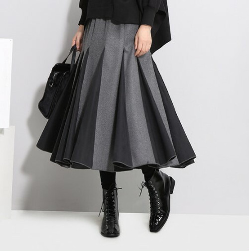 シンプルになりがちなグレーのスカートですが、配色による切り替え効果で