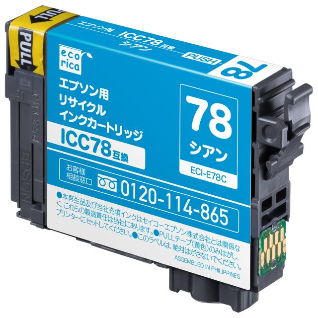 エコリカ [エプソン ICC78 互換]リサイクルインクカートリッジ 大容量(顔料シアン) ecorica 歯ブラシ互換 ECI-E78C返品種別A