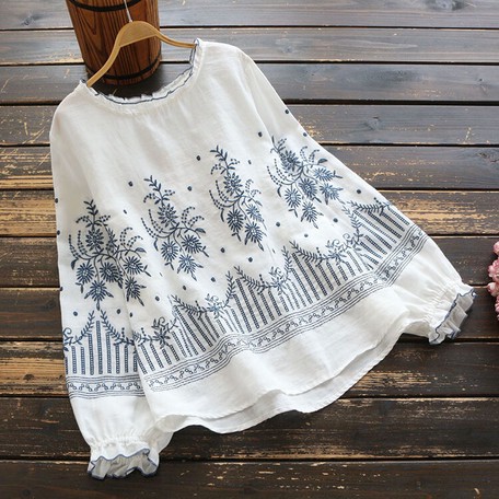 トップス レディース おしゃれ 綿麻 刺繍 レース 上着