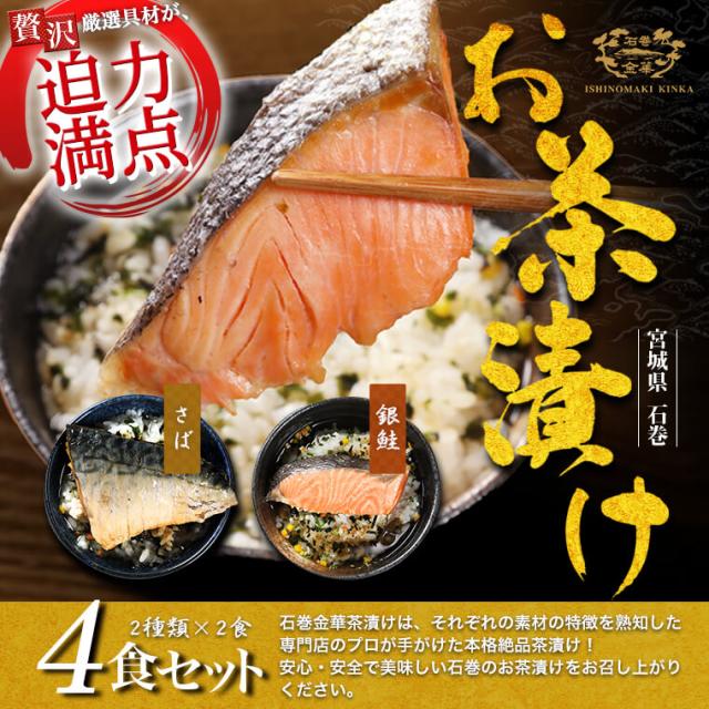 プレゼント 贅沢茶漬け 石巻 金華 お茶漬け 4食セット 銀鮭 さば メール便 高級 1000ポッキリ 送料無料