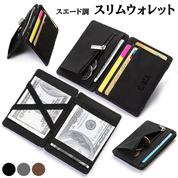 二つ折り カードケース スリム ウォレット マネークリップ リバーシブル カードホルダー メンズ レディース カード入れ 薄型 コンパクト スエード風 PUレザー 合皮 財布 ミニ財布 キャッシュレス ビジネス 軽量 ポケット 旅行