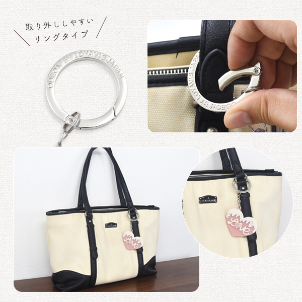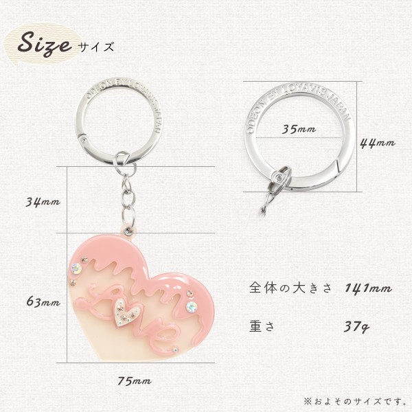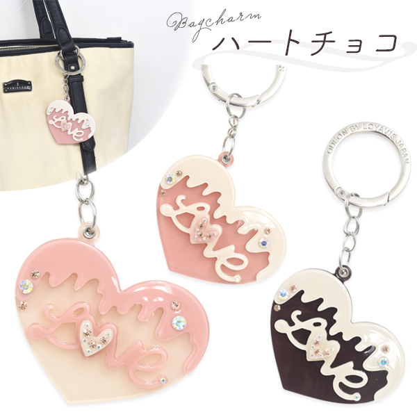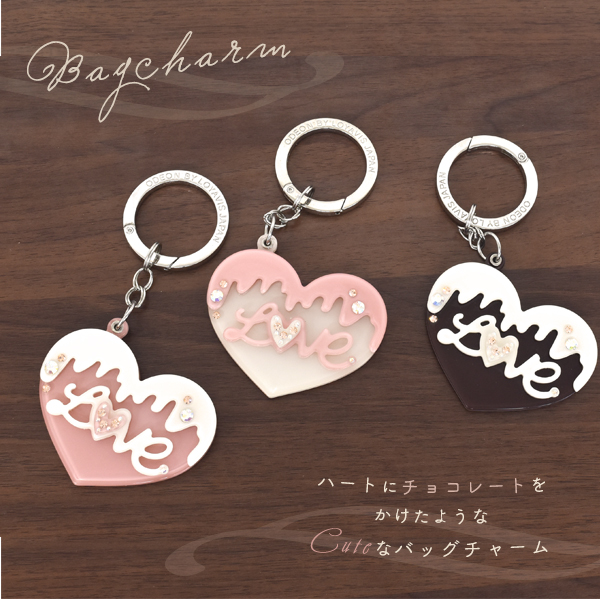 ハートにチョコレートをかけたような可愛いバッグチャームです。