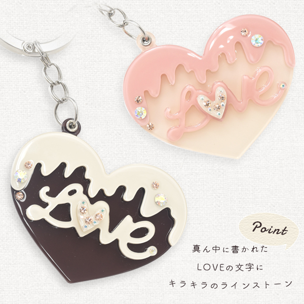 バッグチャーム キーホルダー ハートチョコ お菓子モチーフ ピンク ブラウン ホワイト ラインストーン 可愛い おしゃれ かばん カバン 鞄 キーホルダー 目印 飾り バックチャーム チャーム かわいい アクセサリー レディース ギフト プレゼント