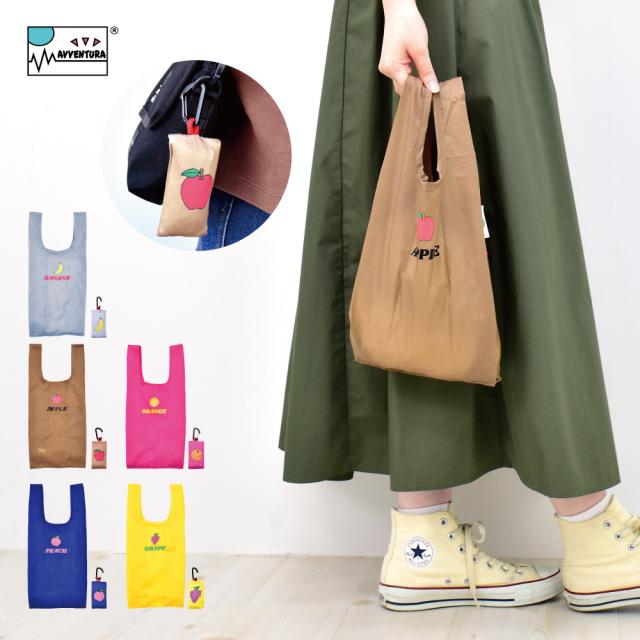 AVVENTURA エコバッグ 折りたたみ コンパクト 男女兼用 ユニセックス ポリナイロン コンビニサイズ 小さめ コンパクト レジ袋 サブバッグ 旅行 シンプル キーホルダー