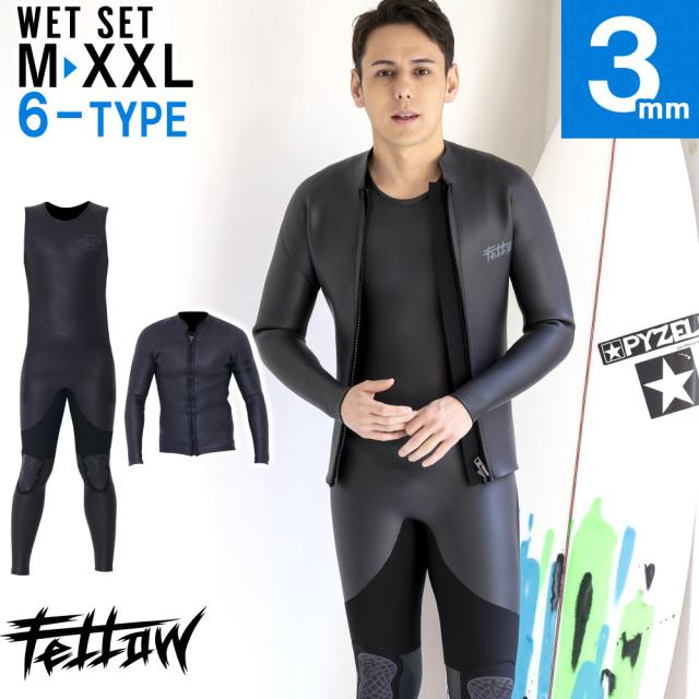 ロングジョン&タッパー セット FELLOW ウェットスーツ スキン メンズ サーフィン ラバー 上下セット 日本規格