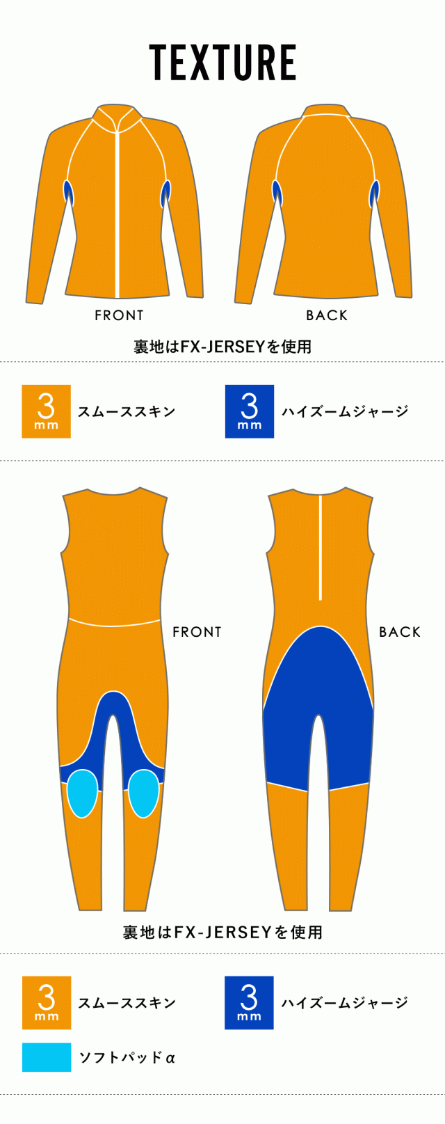 表面:スムーススキン+ハイズームジャージ