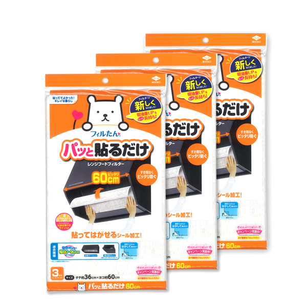 レンジフードフィルター パッと貼るだけ深型用フィルター 60cm 3枚入×3個セット | 換気扇 貼ってはがせる 60cm