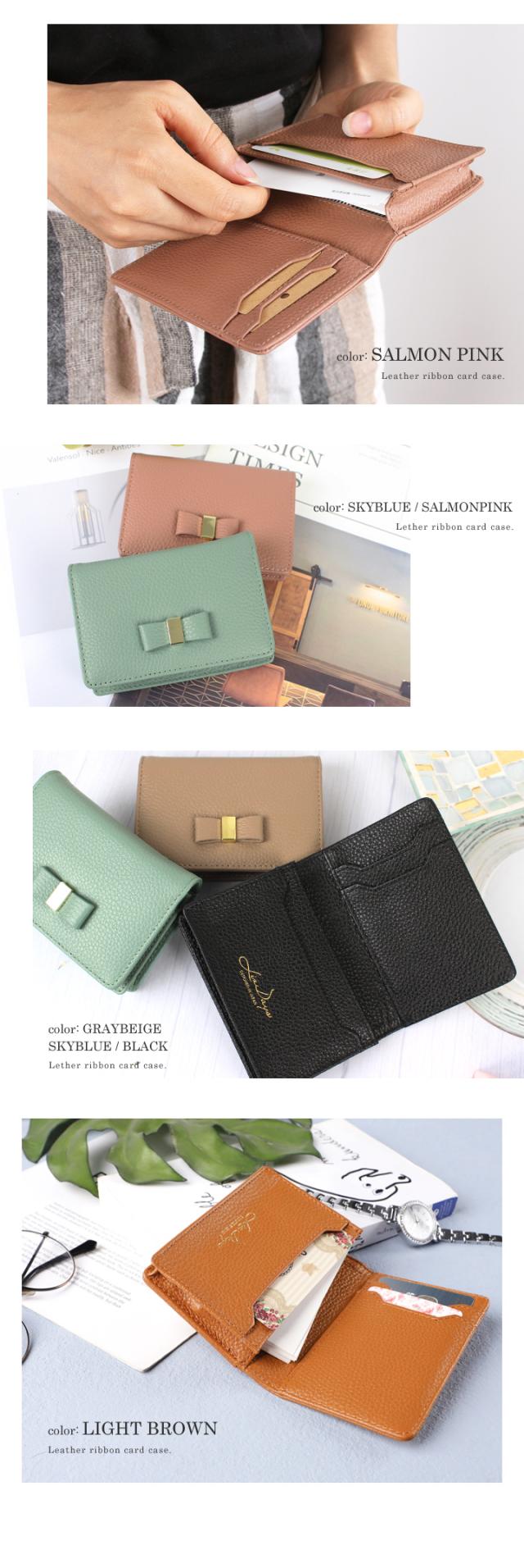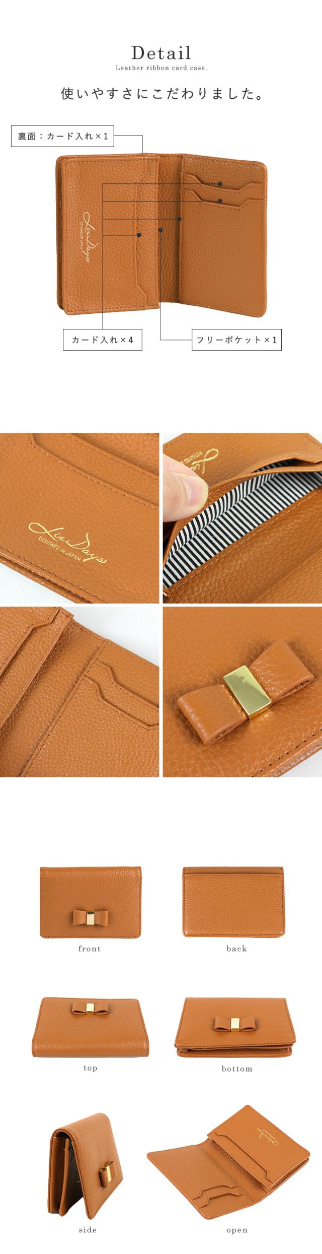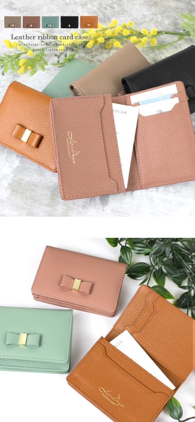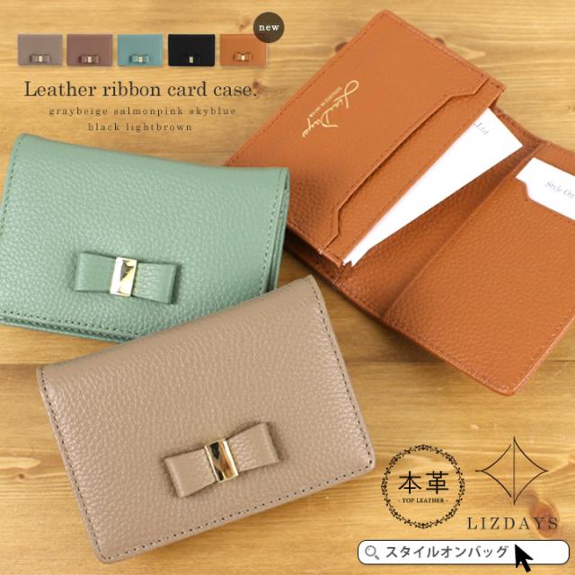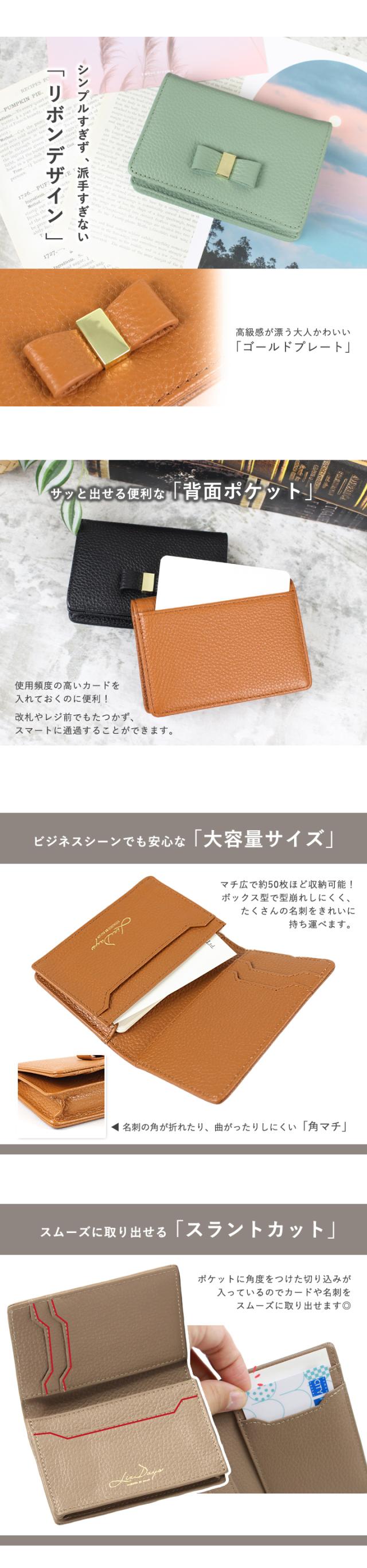 名刺入れ レディース 本革 上質な牛革 小さい 大容量 カードケース 50枚収納 カード入れ 名刺ケース 定期入れ リボン ビジネス 名刺交換 かわいい おしゃれ ギフト プレゼント LIZDAYS リズデイズ liz06 【lz-660】