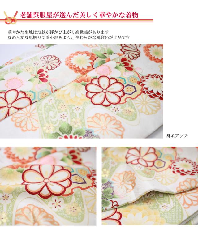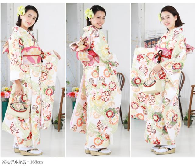 最大20日間レンタル 成人式 振袖 レンタル 20点フルセット 派手 「白地に黄緑流水と菊・雪輪」 成人式 結婚式 フォーマル 小紋柄 日本製生地