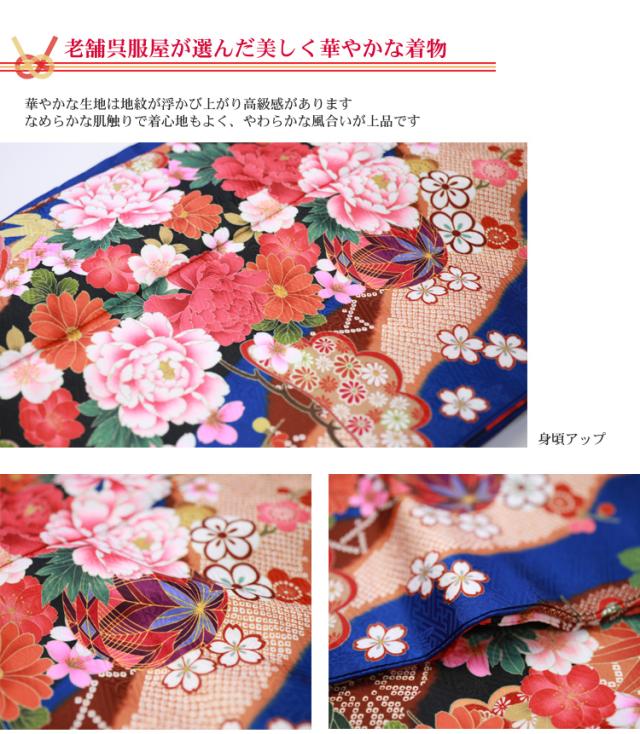 最大20日間レンタル 成人式 振袖 レンタル 20点フルセット 派手 「青地に雲取りと鞠と牡丹」 成人式 結婚式 フォーマル 絵羽柄
