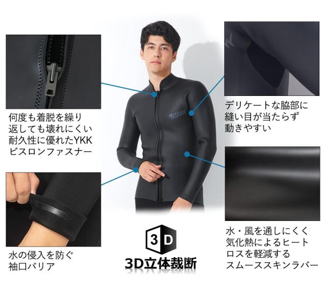 ・ショートジョン:バックジップタイプ/タッパー:フロントジップタイプ YKKビスロンファスナー使用