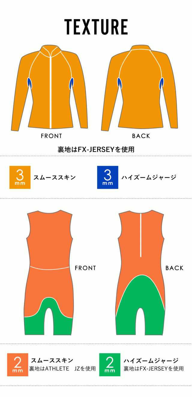 表面:スムーススキン(裏面:ATHLETE JZ)+ハイズームジャージ(裏面:FX-JERSEY)