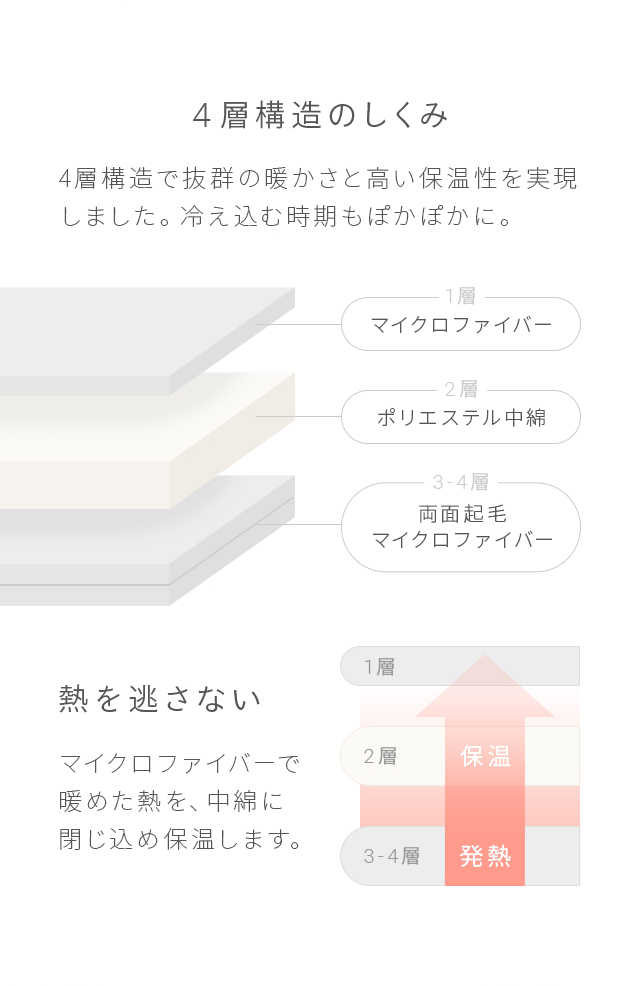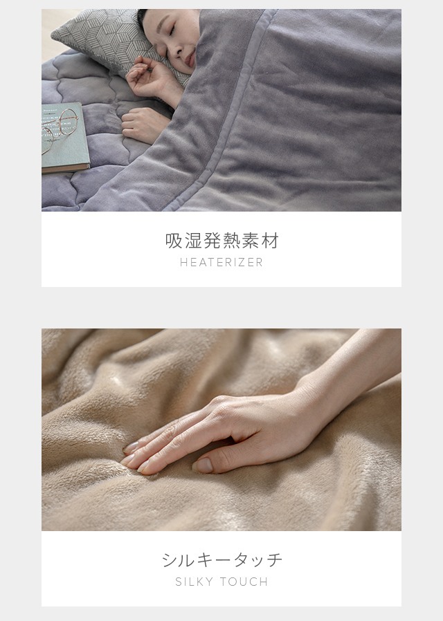 吸湿発熱素材/シルキータッチ/超低ホルムアルデヒド/静電気防止加工/抗菌防臭加工/超低 丸洗いOK/収納バッグ付き
