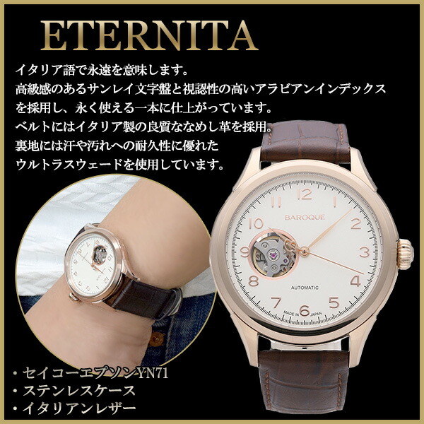 BAROQUE 腕時計 ブランド ウォッチ ETERNITA BA3001RG-01BR エテルニタ 時計 メンズ 紳士 かっこいい 自動巻き スケルトン 本革ベルト