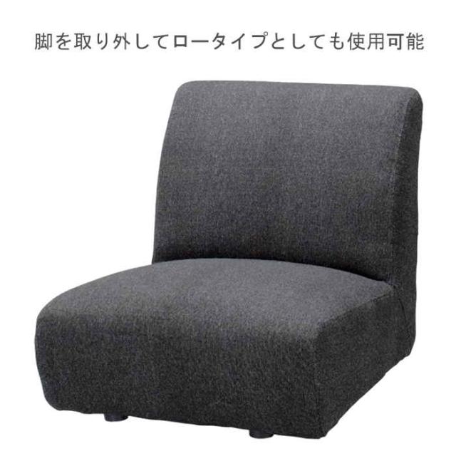 コンパクトなサイズの一人掛けソファ。アームレスタイプ(肘掛け無し)なので、圧迫感がありません。脚部を外してロータイプソファとしてもお使いいただけます。カラーバリエーション:ベージュ(JAN:4985155102075/型番:SS-94BE)、グレー(JAN:4985155102082/型番:SS-94GY)。