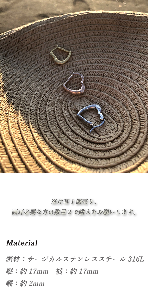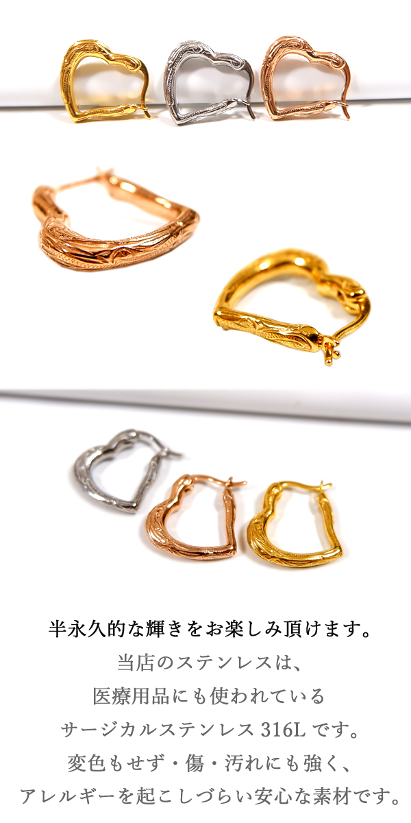 【片耳用】限定個数 ハワイアンジュエリー ハート ピアス ゴールド ピンクゴールド レディース フープ ホヌ スクロール ラッピング対応 アレルギー対応
