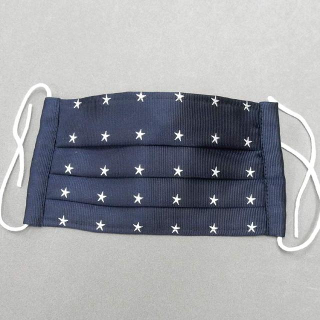 西陣織ネクタイ生地使用 布マスク シルク100%(表地) 抗ウイルス抗菌加工 濃藍/星(スター)柄 日本製 男性用 MSK-NJ10