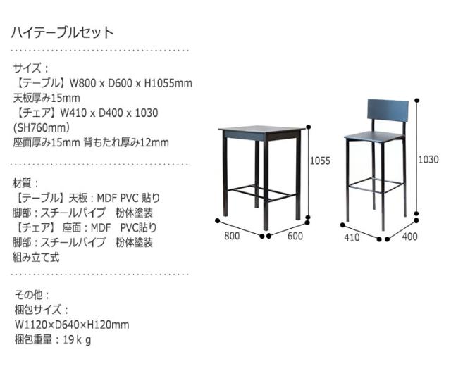 | 材質 | 【テーブル】天板:MDF PVC 貼り 脚部:スチールパイプ 粉体塗装【チェア】 座面:MDF PVC貼り 脚部:スチールパイプ 粉体塗装 |