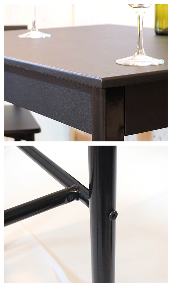 | 説明 | 天板高さが1055mmでちょっと高めのダイニングバーテーブル3点セット。机の天板はPVC張りで、通常の木材などと違い水を吸わないので、飲み物等をこぼした時でもシミにならずサッと拭き取れます。テーブルとチェア、両方にそれぞれ足置きがついており、脚がブラブラして痛くなることもありません。 男性でも女性でも使いやすい、ちょうどよい高さのフットレストです。テーブルとチェアそれぞれの脚裏にはプラスチックのパーツがついており、フローリングでも床にキズをつけず、安心してお使い頂けます。店舗だけでなくキッチンやダイニングセット、またパーティーシーンにもおすすめの、シンプルで使いやすいダイニングセットです。 |