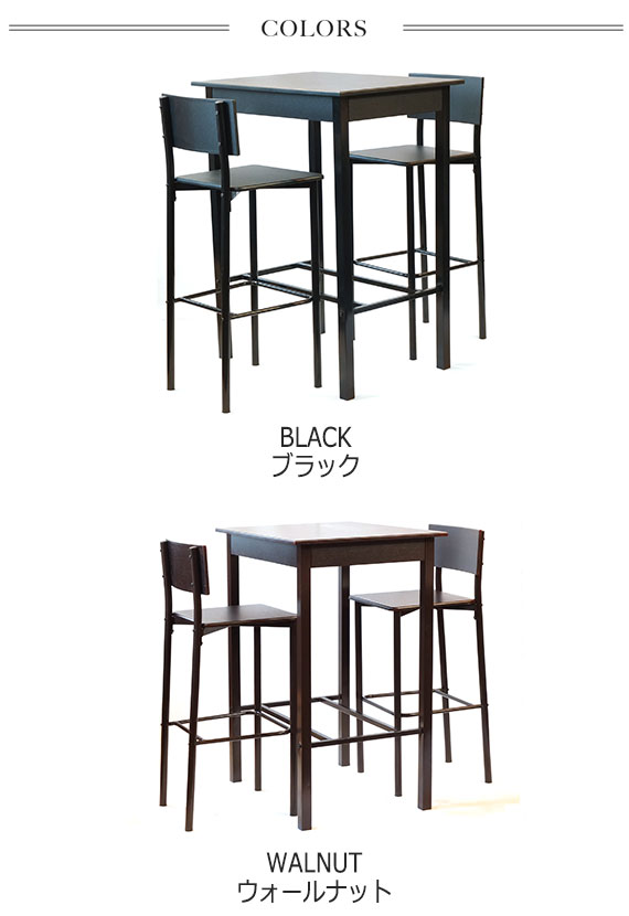 Resort リゾート ハイテーブルセット (ダイニングセット 3点セット ブラック ウォールナット カウンター モダン シンプル コンパクト 1人暮らし 新生活 店舗 カフェ おしゃれ)