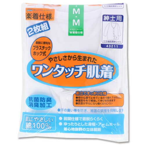 介護 肌着 前開き 3L 2枚組 男 紳士用七分袖シャツ ホック【5000円 税別 以上送料無料】 (g00452)