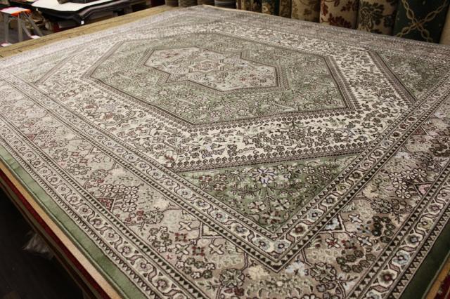 日本製 カーペット 約 2畳 185×185cm ラグ ラグマット 抗菌 モケット織 薄手 グリーン ベージュ 絨毯 OSM 【カトレア 185×185】