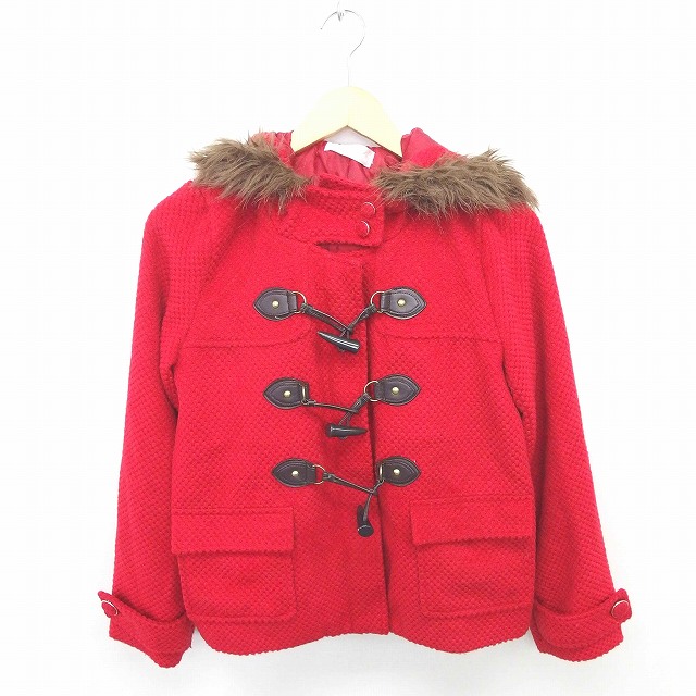 【中古】joky gal コート アウター ダッフル ショート フード フェイクファー 長袖 L 赤 レッド /TT16 レディース