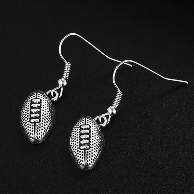 アメリカンフットボールやラグビーのボールをモチーフにしたチャーム揺れるフックタイプのステンレスピアス。