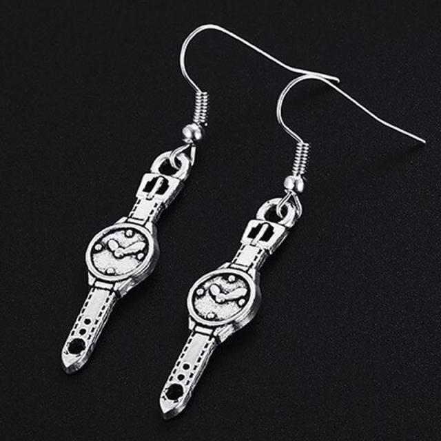 腕時計をモチーフにしたチャーム揺れるフックタイプのステンレスピアス。