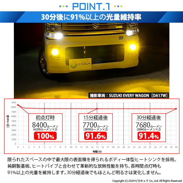 ※ルーメン値は、バルブ2個(車両一台分)の値を示しています。