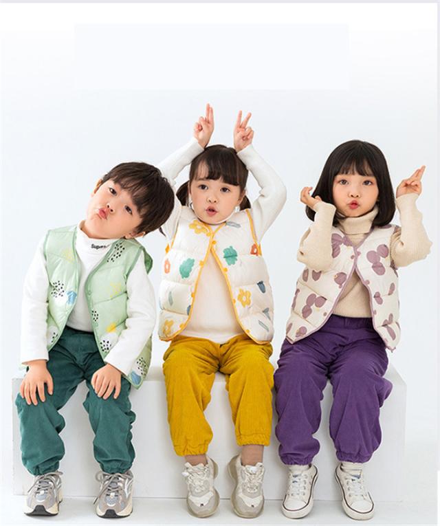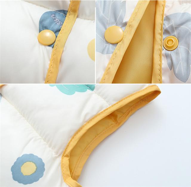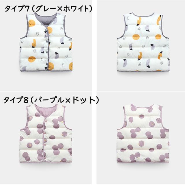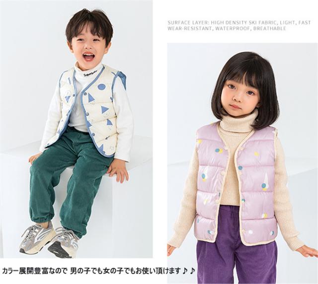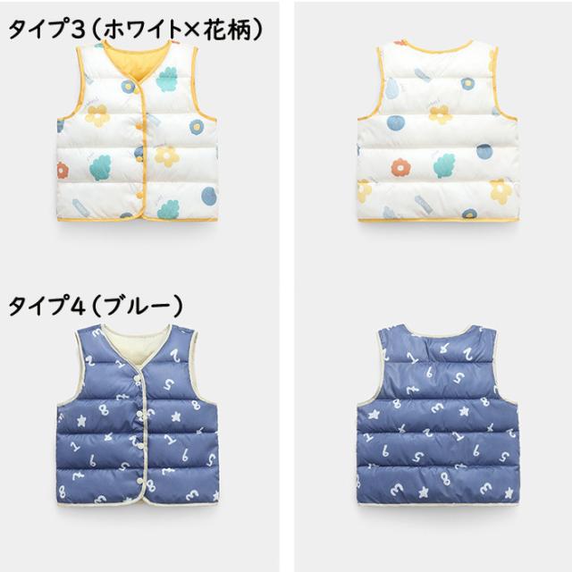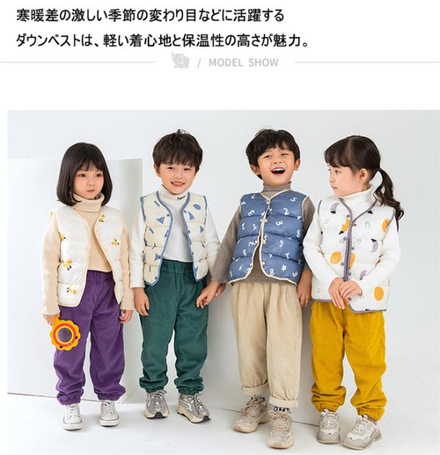ダウンベスト キッズ 子供服 男の子 女の子 ベスト 男女兼用 アウター 上着 秋服 冬服 袖なし 軽量 あったか もこもこ 柄物 可愛い 花柄 グリーン ホワイト イエロー ブルー ダウン 保温 可愛い お洒落