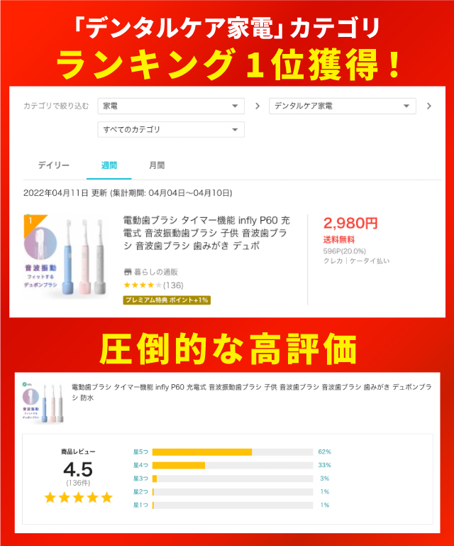 【商品名】:InFly P60 音波式 電動歯ブラシ