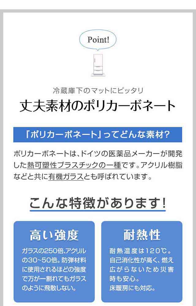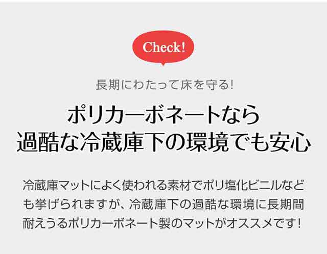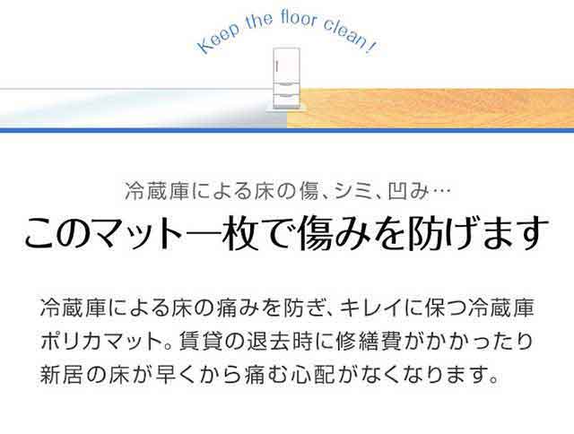 冷蔵庫ポリカマット 傷 キズ 凹み へこみ 汚れ 冷蔵庫用マット 台所マット 台所 キッチン マット 必要 サイズ 保護マット 硬質 ハード 裏表 透明 クリア クリアマット クリアーマット 防水 撥水 保護シート キズ防止 傷防止 凹み防止 汚れ防止 保護 透明マット ポリカーボネイト 拭ける 洗える お手入れ簡単 掃除 油汚れ クリアタイプ インテリアマット フローリング フロアマット キッチン 台所 冷蔵庫下 床 フローリング 賃貸 現状回復 新築 マンション アパート 戸建て 引越し 入居 冷蔵庫 買い替え カーペット 廊下 ペット 床 敷物 シンプル 無地 無印 必要 おしゃれ 便利グッズ 家庭便利用品 口コミ 家電 キッチン家電 キッチン家電用アクセサリー・部品 冷蔵庫・冷凍庫用アクセサリー