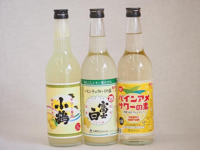 チューハイの素セット(パインアメサワーの素 ゆずレモン 富士白レモン)600×3本