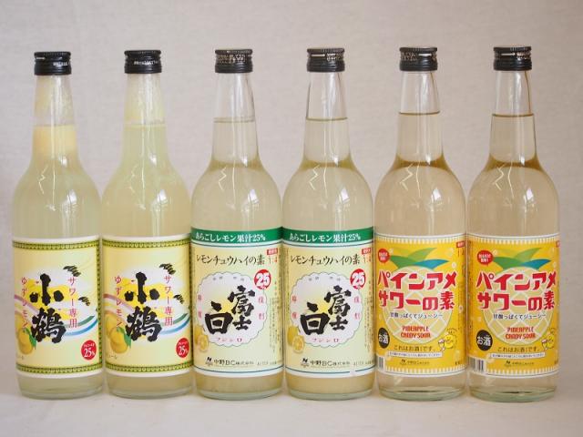 チューハイの素セット(パインアメサワーの素2本 ゆずレモン2本 富士白レモン2本)600×6本