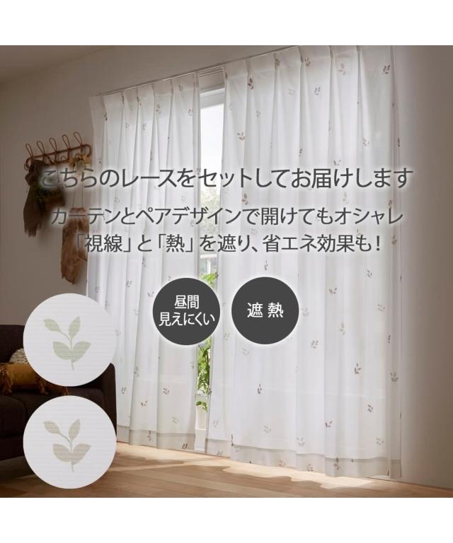 [keyword] カーテン ラグ 寝具 遮光 遮熱 防音 遮音 外から見えにくい 遮像 リーフ 柄 かわいい おしゃれ カジュアル 定番 着回し リビング インテリア 居間 寝室 ベッドルーム [comment] カーテンには「遮熱・防音・1級遮光」、レースカーテンには「遮熱・昼間見えにくい」という大人気の機能を全部詰め込んだ多機能カーテン&レースセット。一番のポイントはカーテン・レースカーテン共に付いている、省エネの「遮熱」機能。外気の熱や冷気を窓辺でブロックして、夏は涼しく冬は暖かく、1年中快適な環