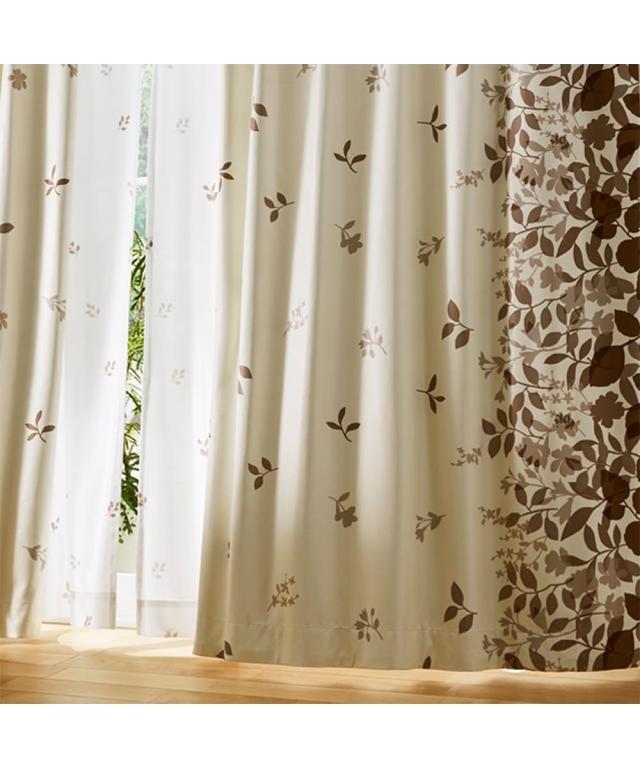 風にそよぐリーフ柄遮熱・防音・1級遮光カーテン&遮熱・遮像レース4枚セット