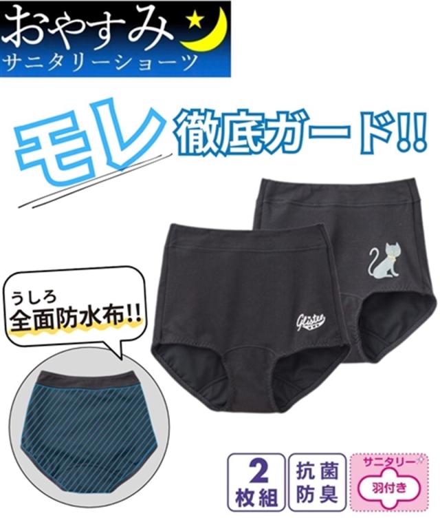 後全面防水布で多い日の夜も安心♪おやすみサニタリーショーツ2枚組(羽付ナプキン対応・抗菌防臭加工)女の子 女児 キッズ ジュニア 子供用