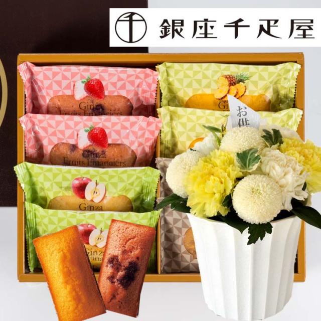 【お供えセット】new優花アレンジメントと【銀座千疋屋】銀座フルーツフィナンシェ セット 最短翌日着 送料無料 フラワーギフト メッセージカード FKAA
