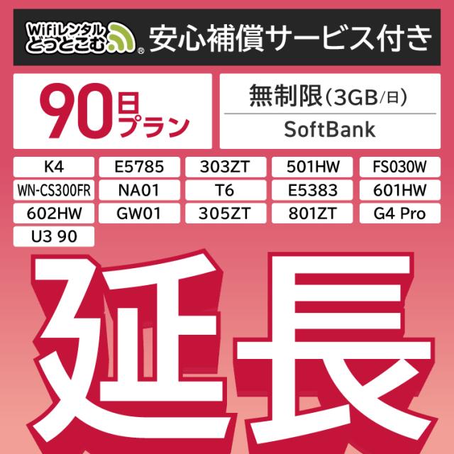【延長専用】 安心補償付き wifi レンタル K4 501HW 303ZT E5785 FS030W NA01 WN-CS300FR E5383 T6 90日 ルーター wi-fi ポケットwifi 3ヵ月