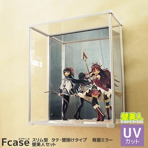 UVカット 壁掛け コレクションケース Fケース スリム・タテ型 背面ミラー 送料無料 ディスプレイケース 壁 傷つけない フック 棚 賃貸 壁掛けタイプ アクリルケース フィギュアケース 安い おしゃれ アクリル 石膏ボード ホッチキス 壁美人