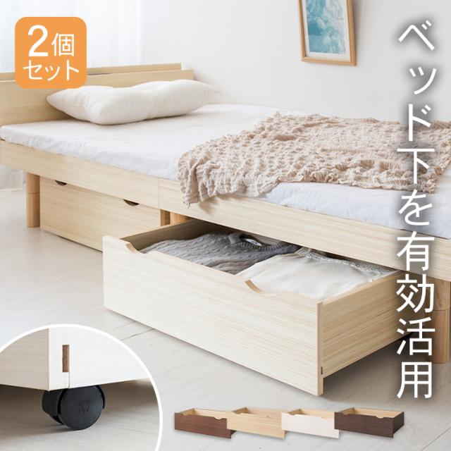 ベッド下の空いたスペースを有効活用できる引き出し2個セットです。