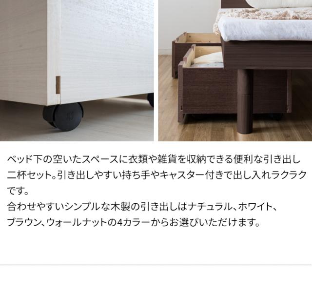 引出し 2個セット UBD-7242 ブラウン ナチュラル ウォルナット ホワイト ひきだし 収納 ベッド下 スペース有効活用 2杯セット キャスター付 天然木 持ち手付 衣類 本 送料無料 【int】