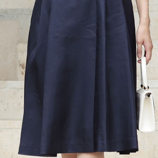 着やせ、美脚を実現させる、ミディアム丈、膝丈、ロングスカート、Aライン、や
