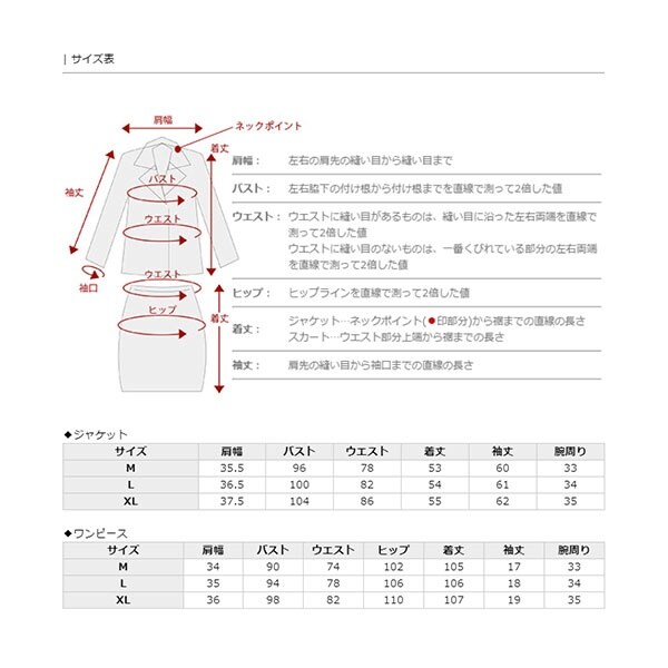 ■素材:【ジャケット】、表地…ポリエステル87%、レーヨン6%、綿5%、ナイロン2%、裏地…ポリエステル100%、、【ワンピース】、表地・裏地…ポリエステル100%