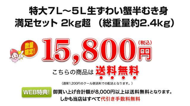 ●商品名/特大7L〜5L生ずわい半むき身満足セット 2kg超(総重量約2.4kg)